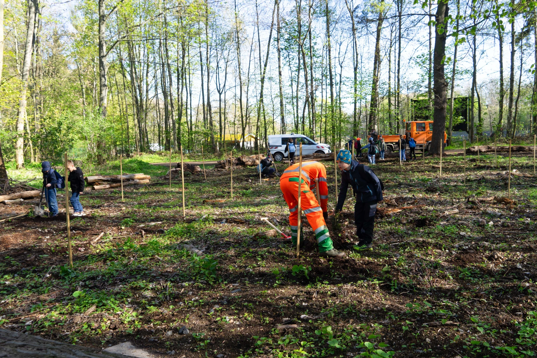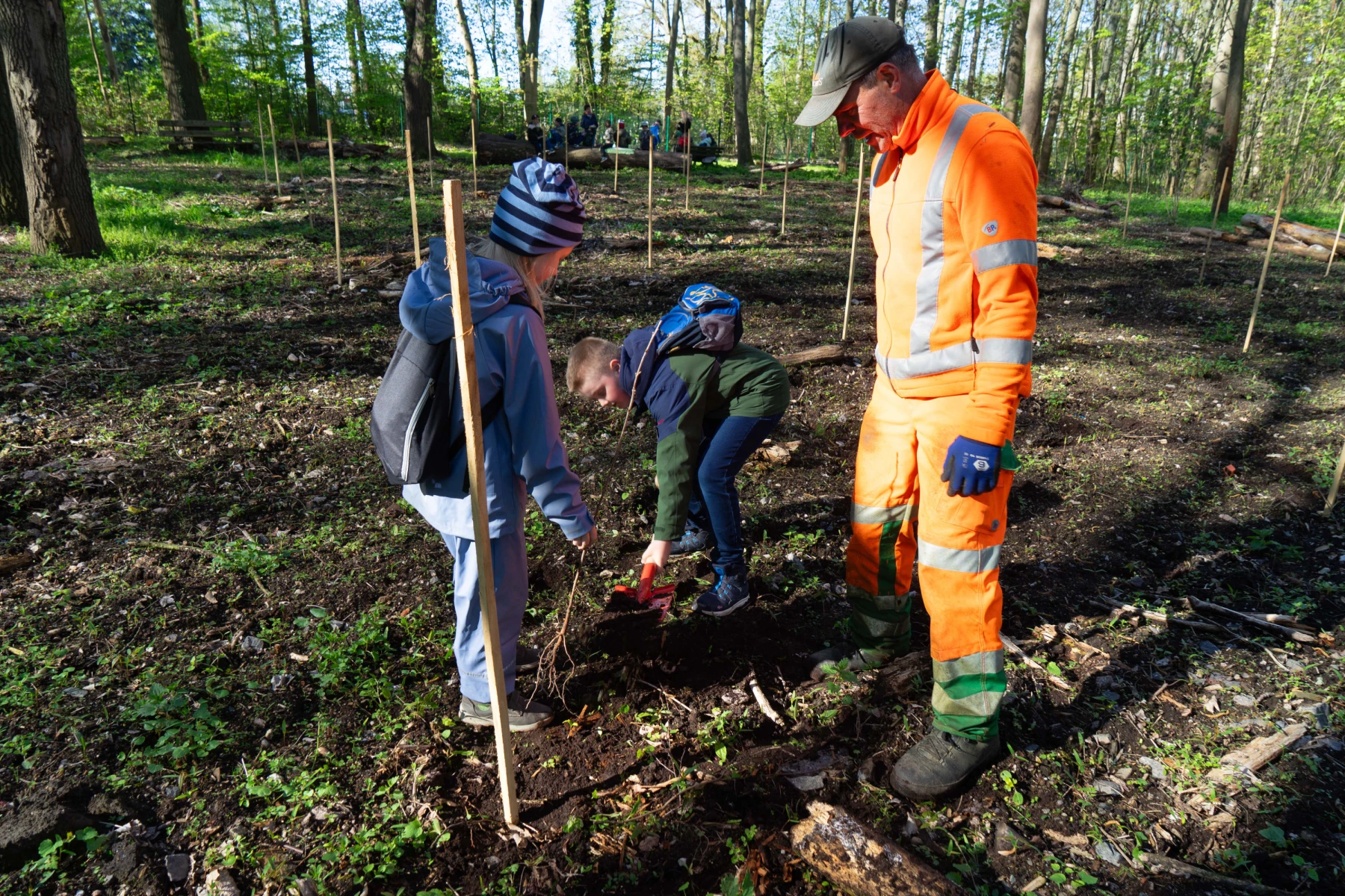 Altenburg - Diesen Schultag werden sie nicht so schnell vergessen: 43 Mädchen und Jungen der Grundschule Karolinum halfen jetzt der Stadt bei der Aufforstung einer Waldfläche. Die ungewöhnliche Aktion im Rahmen eines Projekttags führte die Zweitklässler in den Stadtwald. Dort, in der Nähe der Skatbank-Arena, nahmen sie die Spaten in die Hand und pflanzten insgesamt cirka 100 Bäumchen. Die Setzlinge, jeweils zehn, verteilen sich auf zehn Arten: Douglasie, Weißtanne, Hemlocktanne, Esskastanie, Schwarznuss, Vogelkirsche, Winterlinde, Speierling, Elsbeere und Flatterulme. Jedes Kind hatte zudem die Möglichkeit, eine Wuchshülle zu bemalen.