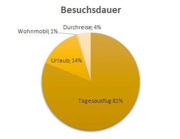 Die meisten Besucherinnen und Besucher kamen zu zweit oder zu dritt (jeweils 32 Prozent) bzw. zu viert (20 Prozent). Nur drei Prozent waren allein unterwegs, der Rest reiste zu fünft oder mit mehr Personen.