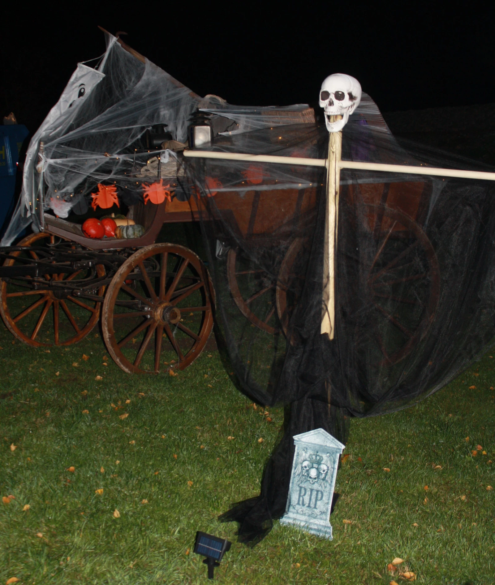 Endete in den Vorjahren das Treiben im Haus des Grauens, wie das Vereinshaus liebevoll von Cruella de Vil genannt wurde, so wurde der Tross diesmal auf einem Gräberfeld empfangen. Gruselig, wie sich die Toten aus dem Boden quälten und die Kreuze mit Spinnweben verhangen waren. Roter Rauch zog über die Straße, die Häuser waren verwandelt in heimliche Brutstätten furchteinflößender Gestalten. Kurz, ein Riesenspaß für die fast 50 Gäste, die von den Grafen Dracula Klaus und Steffen, Petra Cruella de Vil und den Hexen Jana Winifred Sanderson und Elke empfangen wurden. Schön zu sehen, wie freudig erregt die Skelette zitterten und die Mumien bebten.