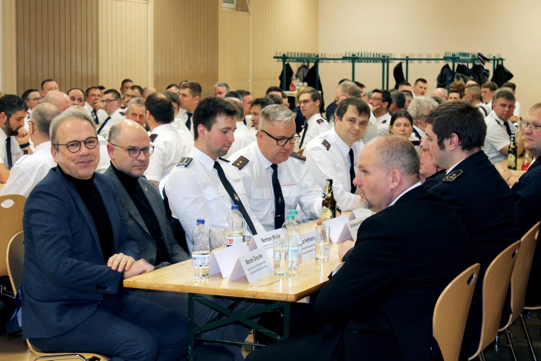 Als Überraschungsgast nahm der Thüringer Innenminister Georg Meyer an der Versammlung teil. Zudem folgten zahlreiche hochrangige Vertreter aus Politik und Feuerwehr der Einladung. Unter ihnen waren der Staatssekretär für Inneres Norman Müller, der stellvertretende Landrat Marcel Greunke, sowie Ramon Hofmann, 1. Vizepräsident des Landesfeuerwehrverbandes Thüringen, und natürlich Bürgermeister Hendrik Läbe. Ebenfalls anwesend waren Andreas Hofmann, Vorsitzender des Kreisfeuerwehrverbandes, Kreisbrandinspektor Florian Körner, Kreisbrandmeister Torsten Wirth, Kreisjugendwart Stephan Penndorf, Stadtbrandmeister von Gößnitz René Toll, Gemeindebrandmeister von Langenleuba-Niederhain Felix Trenkmann sowie der Gemeindebrandmeister von Göpfersdorf Dr. Matthäus Speck. In ihren Grußworten würdigten sie übereinstimmend das hohe Engagement und die Leistungsfähigkeit der Freiwilligen Feuerwehr Nobitz.