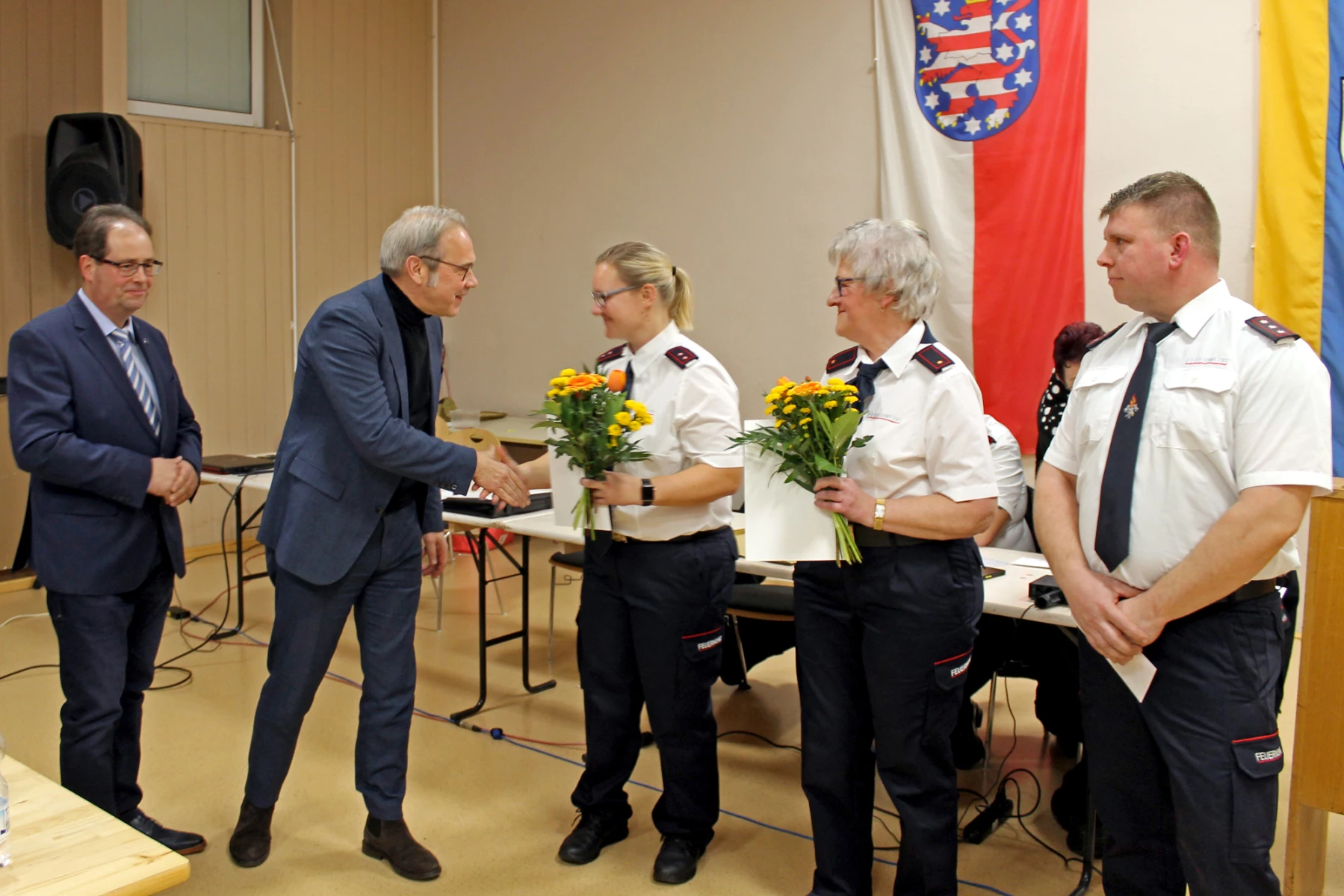 In mehreren Redebeiträgen wurde auch die politische Verantwortung angesprochen. Der abwehrende Brandschutz ist eine Pflichtaufgabe der Kommunen. Die finanzielle Ausstattung sei jedoch vielerorts nicht ausreichend. Fahrzeuge und Technik seien teilweise stark veraltet. Neben notwendigen Investitionen in die Löschwasserversorgung ist unter anderem die Anschaffung von zwei Hilfeleistungslöschfahrzeugen mit einem geschätzten Gesamtwert von rund 1,2 Millionen Euro vorgesehen. Neuanschaffungen seien dringend notwendig, jedoch kostenintensiv. Der Thüringer Innenminister hat diesen Appell an den Freistaat zur Kenntnis genommen und in seinem Grußwort nochmals bestätigt, dass die finanzielle Ausstattung der Kommunen für den örtlichen Brandschutz ein wesentlicher Aspekt sei. Die Zusicherung, dass auf Landesebene geprüft werde, mehr Mittel für die Kommunen bereitzustellen, haben alle Anwesenden registriert.