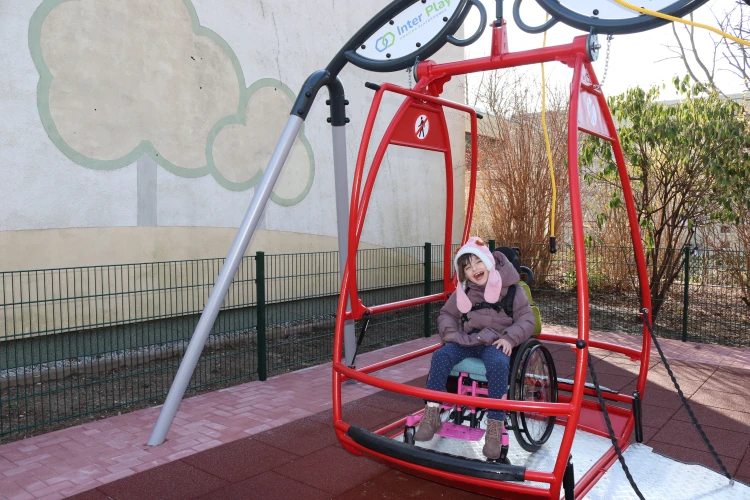 Der Landkreis, als Schulträger des staatlichen Förderzentrums mit dem Förderschwerpunkt geistige Entwicklung, hat eine moderne Spielekombination errichtet, die verschiedene Schwierigkeitsgrade zum Klettern, Rutschen und Balancieren bietet. Um allen Kindern die Teilhabe am Spielplatzleben zu ermöglichen, wurde zusätzlich eine Rollstuhlfahrerschaukel installiert.