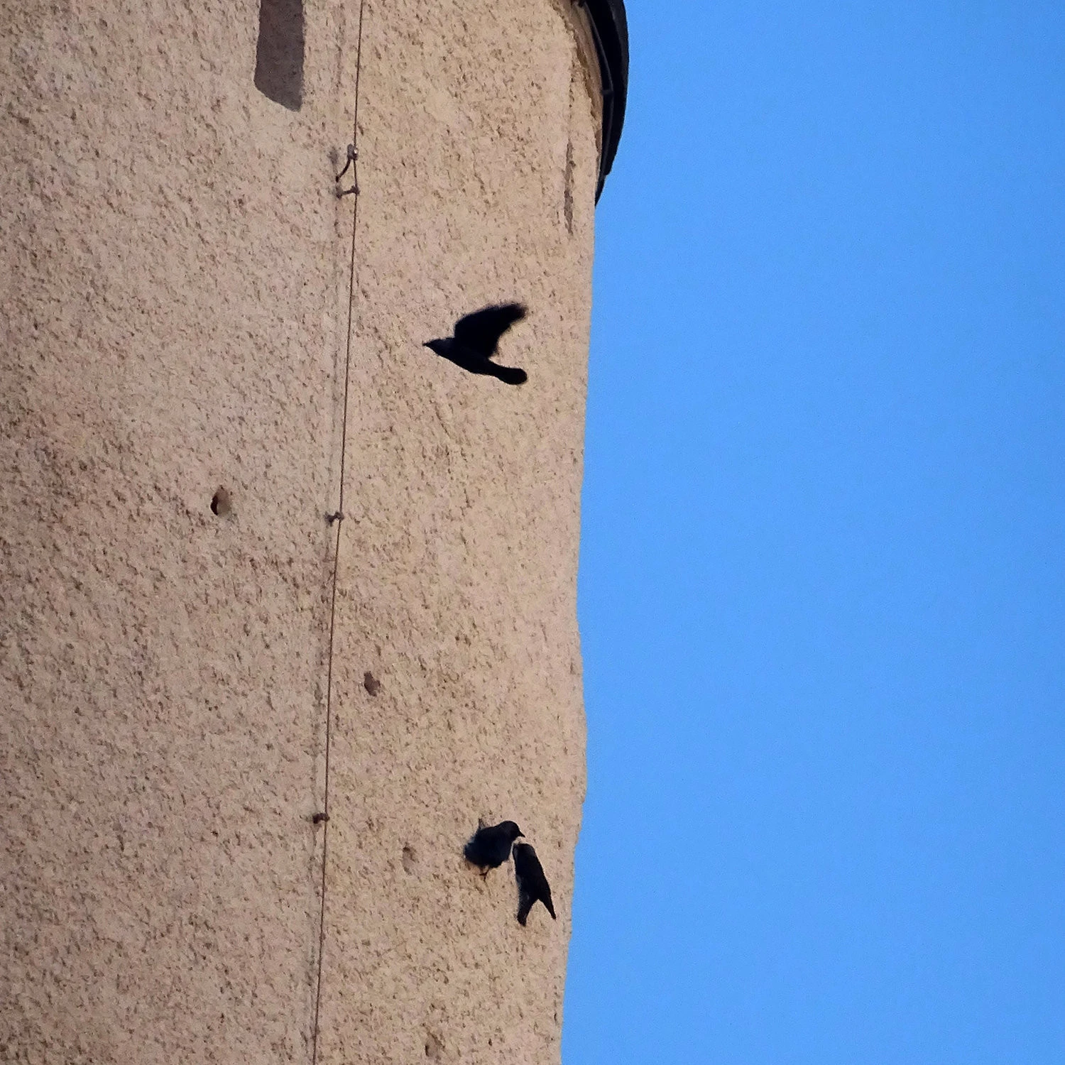 In der Dokumentation ihrer Beobachtungen aus dem Jahr 2024 hatte sie neben zahlreichen Mauerseglern auch ein Dohlenpaar aufgezeichnet. Mittlerweile ist von drei bis vier Paaren auszugehen, was ein deutliches Zeichen dafür ist, dass sich die Tiere hier wohlfühlen.