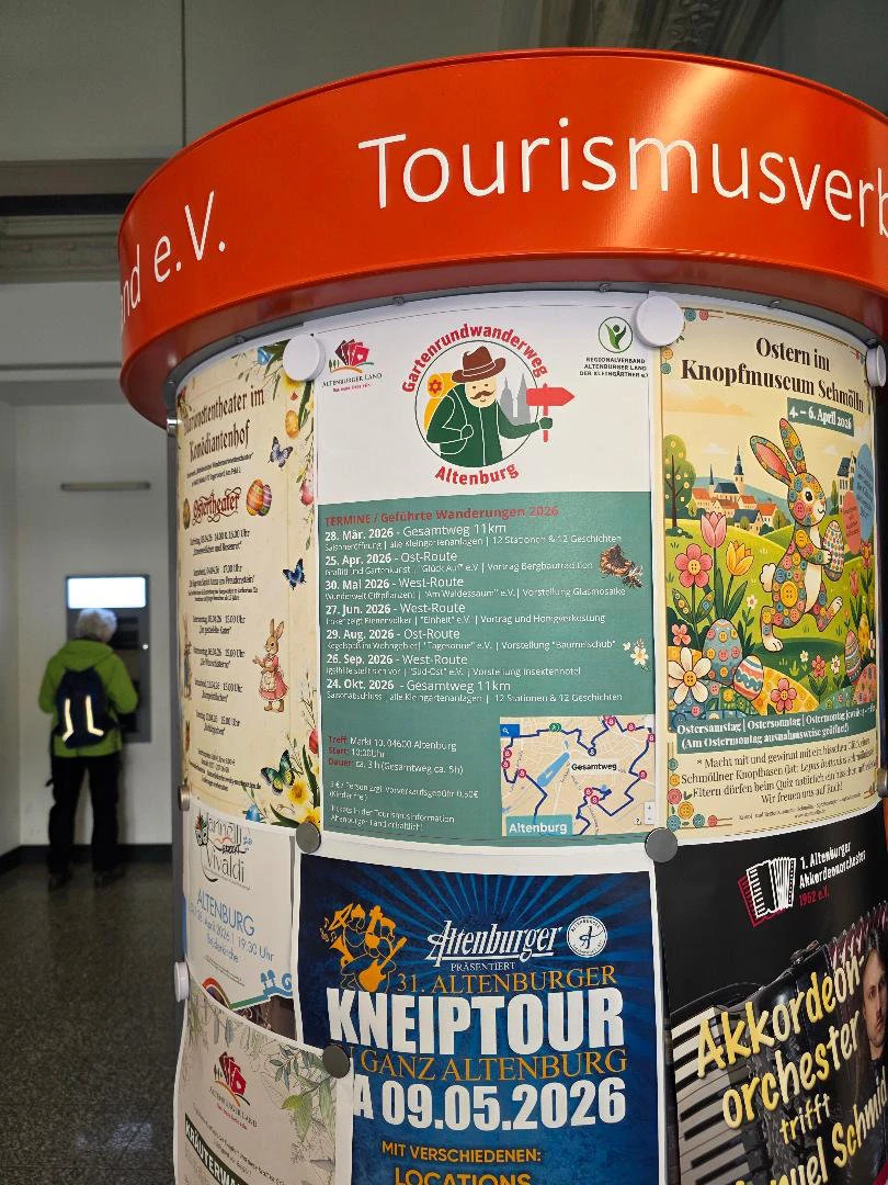 Am 28. März fand die Saisoneröffnung statt. Gäste aus Gera, Schmölln, Posterstein und Altenburg erkundeten auf dem 11 km langen Rundweg die Gartenstadt Altenburg. Die nächste geführte Wanderung ist am 25. April um 10:00 Uhr (Treffpunkt: Markt). Ziel ist die KGA „Glück Auf“ e. V.; Themen sind unter anderem Graffiti und Schulgartenunterricht. Es besteht zudem die Möglichkeit, an der städtischen Reinigungsaktion (Cleaning Day) teilzunehmen.