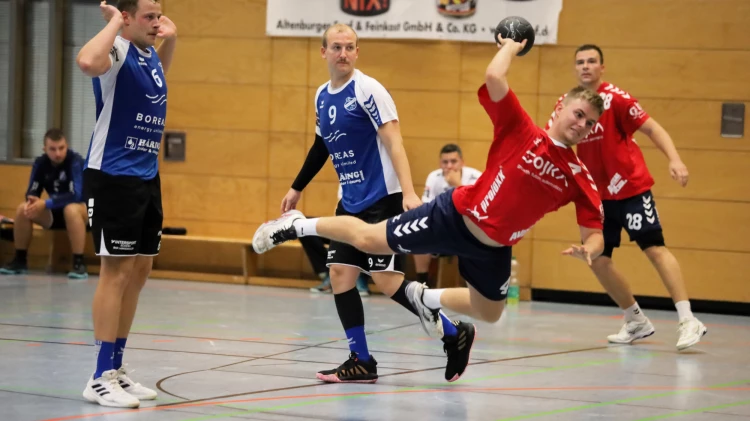 Zu den in der Oberliga Männer ausgetragenen fünf Auftaktbegegnungen gehörte das letzte Tagesspiel SV Aufbau Altenburg gegen SV Blau-Weiß Goldbach/Hochheim. Zwei alte Rivalen, die die vorige Saison als Tabellennachbar beendeten. Dass die Gäste damals zweimal unterlegen waren, bedeutete aber nicht die Goldbacher auf die leichte Schulter zu nehmen. Zwar legten Johann Felix Köhler und Lucas Walzel (1. und 2.Minute) vor, und auch das 3:1 durch Robby Borngräber (3.) schien für die Skatstädter zu sprechen, doch dann dauerte es bis zur 40.Minute, ehe Köhler wenigstens den Ausgleich (17:17) herstellen konnte. Bis dahin lagen die Schützlinge von Trainer Patrick Schatz und Co. Sebastian Heilmann stets im Rückstand, in Minute 23 gar mit vier Toren (9:13). Kevin Reinhardt und Yassine Bensalem hatten Schwerstarbeit im Aufbau-Gehäuse zu verrichten, zu druckvoll und erfolgreich waren die Aktionen der Goldbacher Marc Justin Wellendorf (9 Tore) und Benjamin Goller (7 Tore). Die Gäste blieben weiter dran, eine Wende auf der Anzeigetafel bahnte sich erst mit dem 21:19 durch Nico Bertus (47. Min.) an. Lars Schäfer erhöhte auf 23:19 (48./49.). Die Gäste blieben dennoch weiter im Spiel (24:23/52.Min.). Die Auszeit von Aufbau-Coach Schatz sollte es richten: Johann Felix Köhler (gesamt 5 Tore), Lars Schäfer (6), Nico Bertus (5), Tim Vogeler (1), Robby Borngräber (4) und letztlich Chris Unger (59:51 Min.) machten in den hektisch geführten – aber durch das Schiedsrichterduo Jens Hanse/Roy Krumbholz sicher geleiteten Schlussminuten den 29:24-Erfolg des Gastgebers perfekt. Weitere Tore für die Altenburger markierten Marten Schulz (3) Lennart Bettels (1).