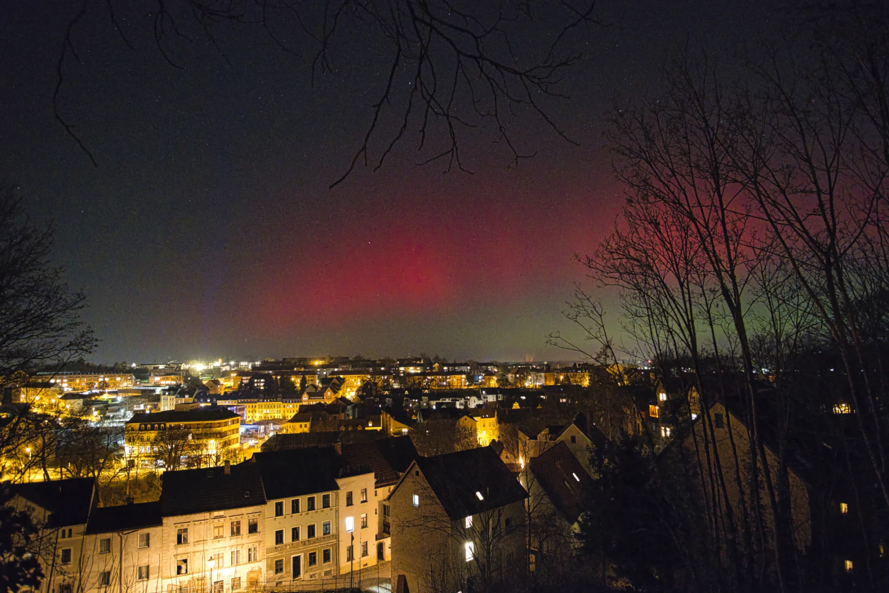 Auch in Altenburg selbst waren die Polarlichter deutlich wahrnehmbar. Trotz städtischer Lichtquellen konnten die Lichterscheinungen am Himmel mit bloßem Auge erkannt werden. Besonders eindrucksvoll zeigte sich das Naturschauspiel im Altenburger Schlosspark, wo es dem Fotografen unserer Redaktion gelang, die schimmernden grünen und rötlichen Lichtbänder fotografisch festzuhalten. Die Aufnahmen belegen, dass das seltene Himmelsphänomen nicht nur in ländlichen Regionen, sondern sogar innerhalb des Stadtgebiets sichtbar war und zahlreiche Beobachterinnen und Beobachter in Staunen versetzte.
