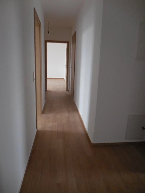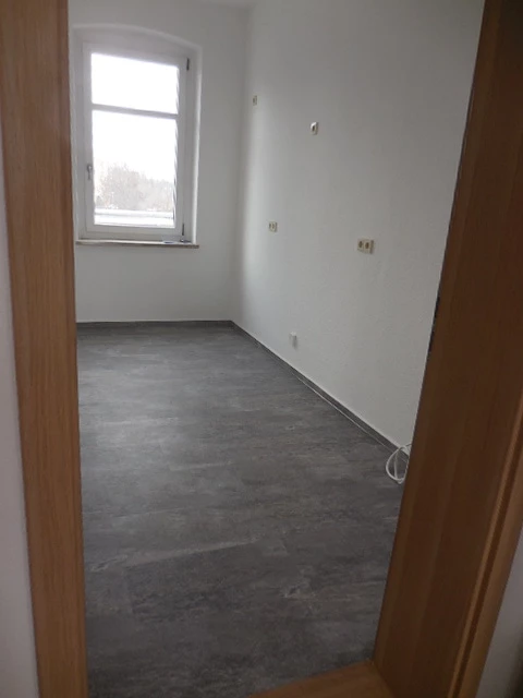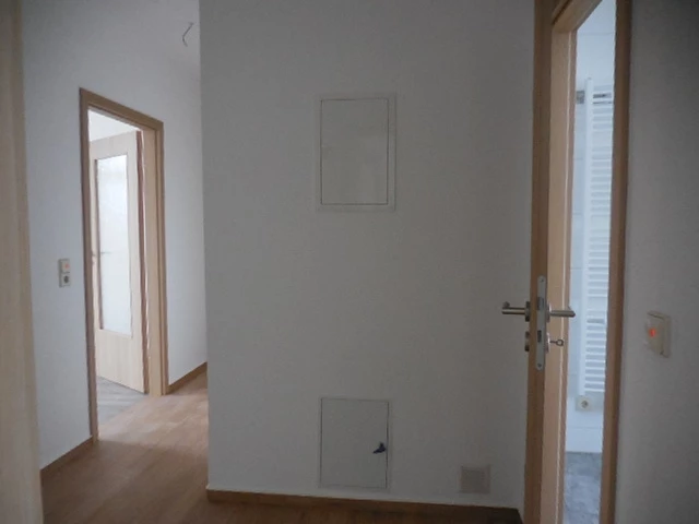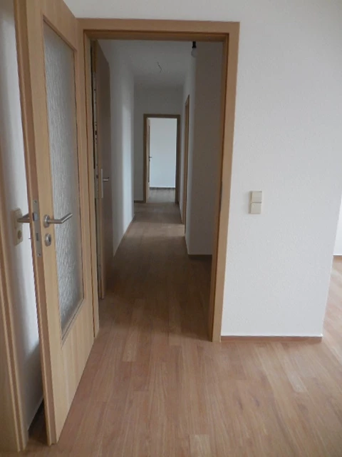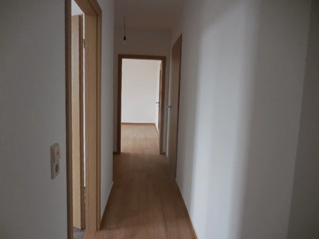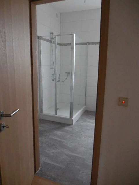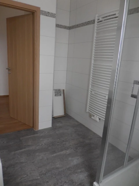 Das Wohnzimmer ist mit Laminat und die restlichen Wohnräume sowie die Küche und der Flur sind mit PVC-Belag ausgestattet. Das Tageslicht-Duschbad ist komplett gefliest.