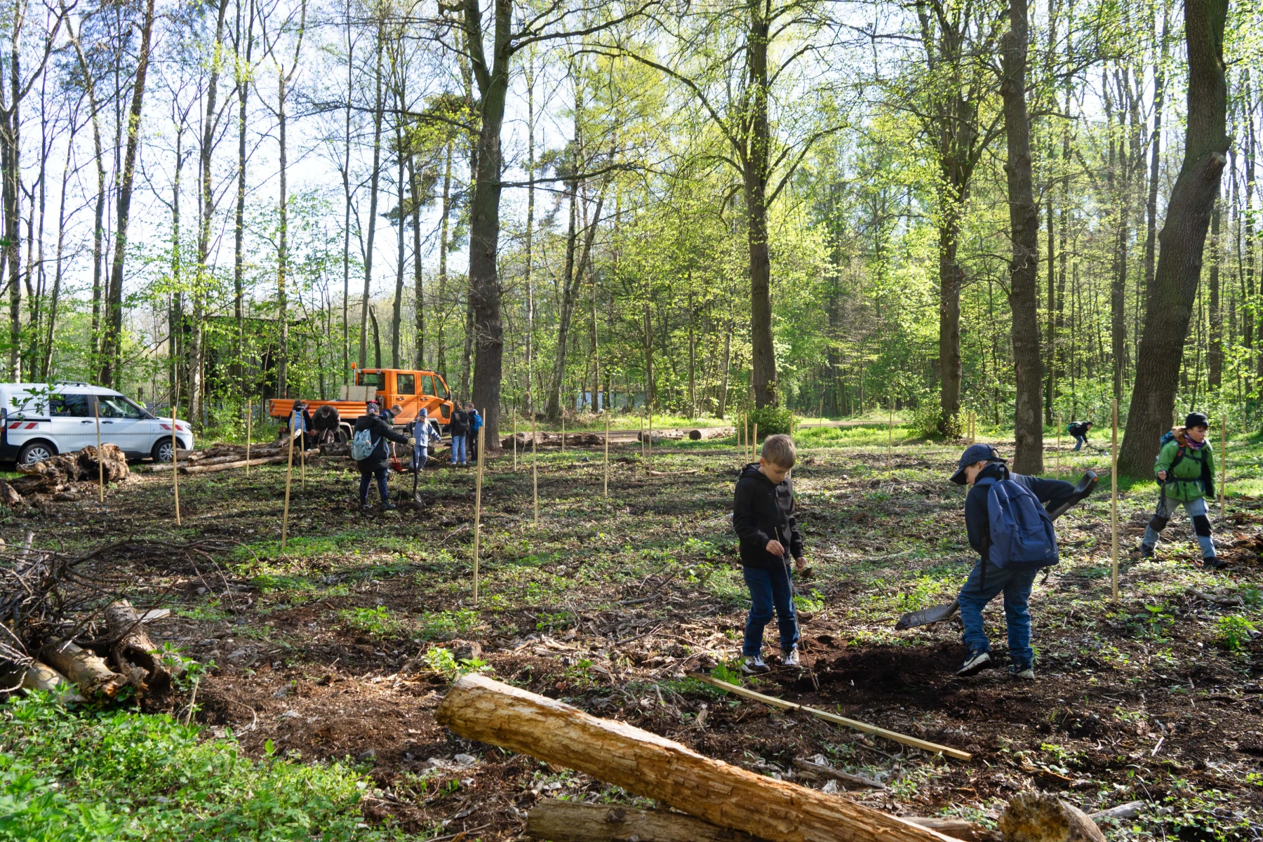 Altenburg - Diesen Schultag werden sie nicht so schnell vergessen: 43 Mädchen und Jungen der Grundschule Karolinum halfen jetzt der Stadt bei der Aufforstung einer Waldfläche. Die ungewöhnliche Aktion im Rahmen eines Projekttags führte die Zweitklässler in den Stadtwald. Dort, in der Nähe der Skatbank-Arena, nahmen sie die Spaten in die Hand und pflanzten insgesamt cirka 100 Bäumchen. Die Setzlinge, jeweils zehn, verteilen sich auf zehn Arten: Douglasie, Weißtanne, Hemlocktanne, Esskastanie, Schwarznuss, Vogelkirsche, Winterlinde, Speierling, Elsbeere und Flatterulme. Jedes Kind hatte zudem die Möglichkeit, eine Wuchshülle zu bemalen.