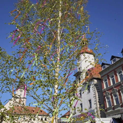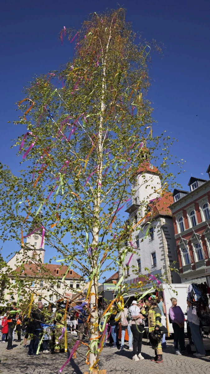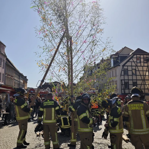 Parallel dazu wurde eine weitere Tradition gepflegt: Die Freiwillige Feuerwehr Schmölln stellte den Maibaum auf, den die Kinder zuvor liebevoll geschmückt hatten. Ab 17:00 Uhr konnten große und kleine Gäste zudem die Einsatzfahrzeuge der Feuerwehr, darunter auch eine Drehleiter, aus nächster Nähe bestaunen.