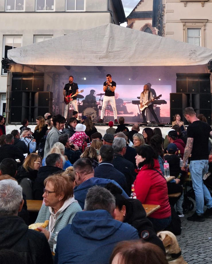Den musikalischen Abschluss des Festtages bildete ab 19:30 Uhr die Partyband Swagger, die mit ihrem mitreißenden Programm den Marktplatz in eine ausgelassene Feierzone verwandelte.