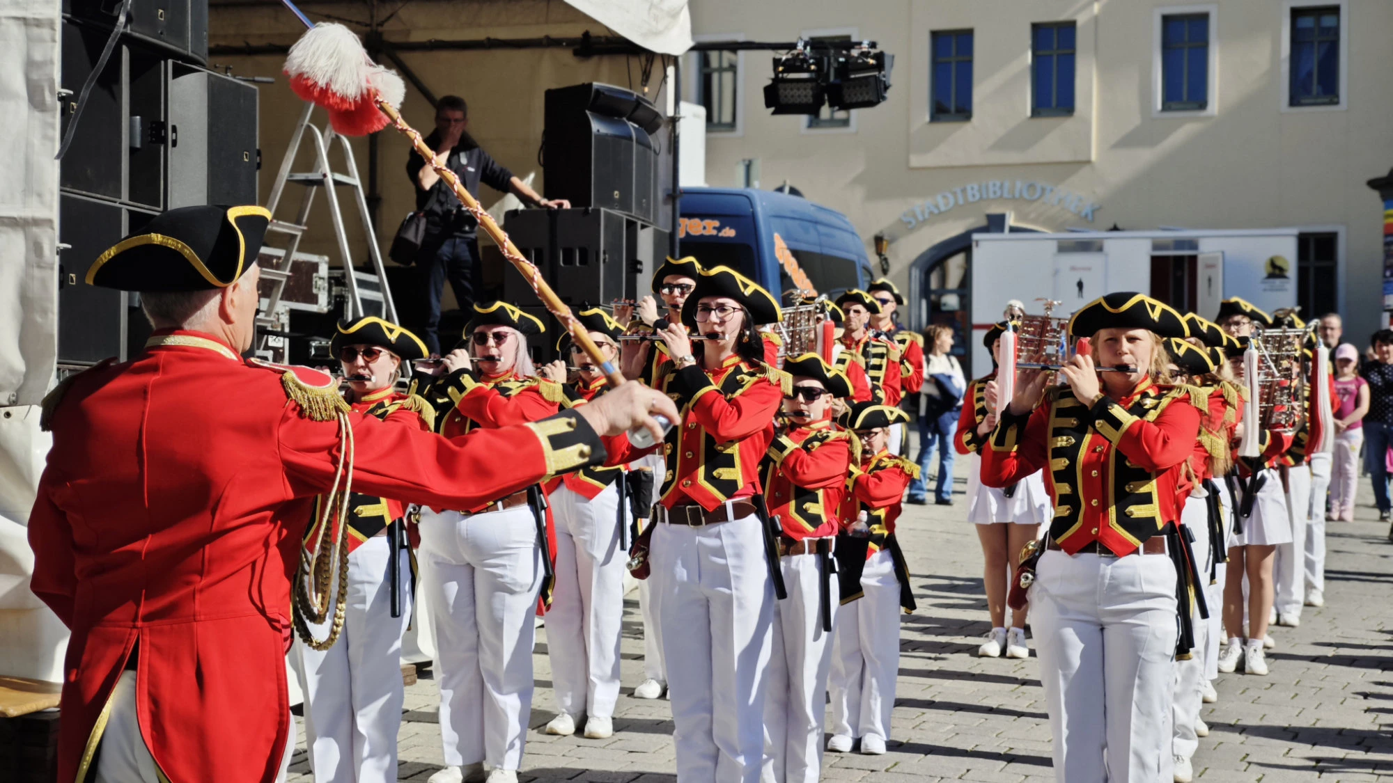 Auch das Bühnenprogramm sorgte für durchgehende Unterhaltung. Um 14:00 Uhr begeisterten die Cheerleader das Publikum mit einer energiegeladenen Darbietung. Eine Stunde später zeigten die Tanzmädels aus Meerane vom Verein Tanzboden ihr Können. Den musikalischen Höhepunkt am Nachmittag setzte um 16:30 Uhr die Spielleute Union Frisch Voran mit einem eindrucksvollen Auftritt.
