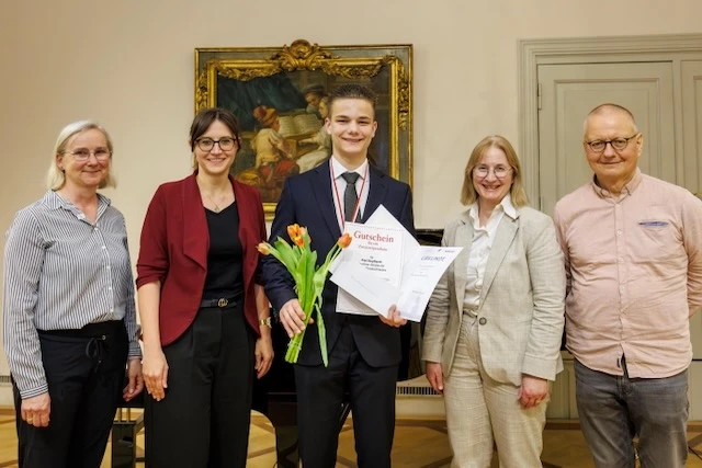 Die diesjährigen Stipendiaten zeigten eindrucksvoll, warum sie zur Spitze des mitteldeutschen Nachwuchses gehören. Alle Preisträgerinnen und Preisträger verbindet eine besondere Beharrlichkeit: Sie hatten sich bereits zum dritten Mal oder öfter um die Förderung beworben. Fanny May Schönhardt aus Halle (Saale) begeisterte das Publikum mit einer tief beseelten Interpretation von Händels Violinsonate D‑Dur und Mozarts Violinkonzert Nr. 5; vorgestellt wurde sie von Prof. Dr. Bert Greiner, am Klavier begleitete sie Emin Mamedov.