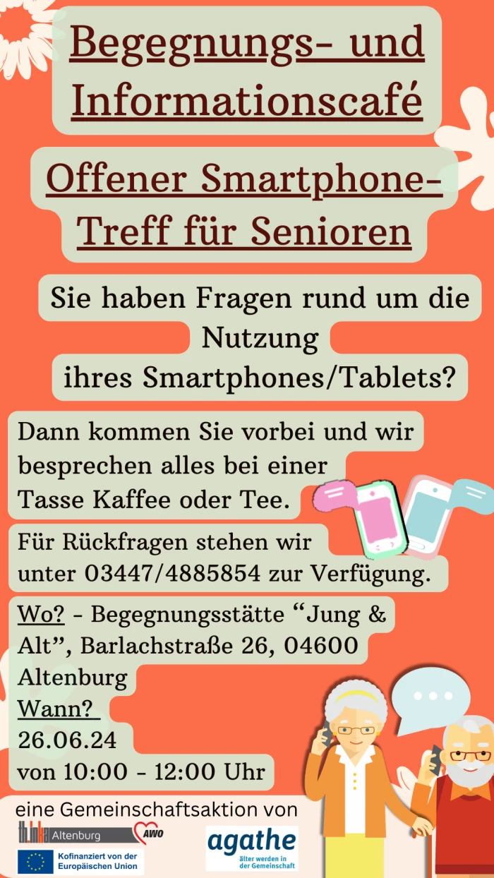 Kommen Sie am 26.06.2024 von 10:00 – 12:00 Uhr in die AWO Begegnungsstätte „Jung & Alt“ in der Barlachstraße 26 (Altenburg).