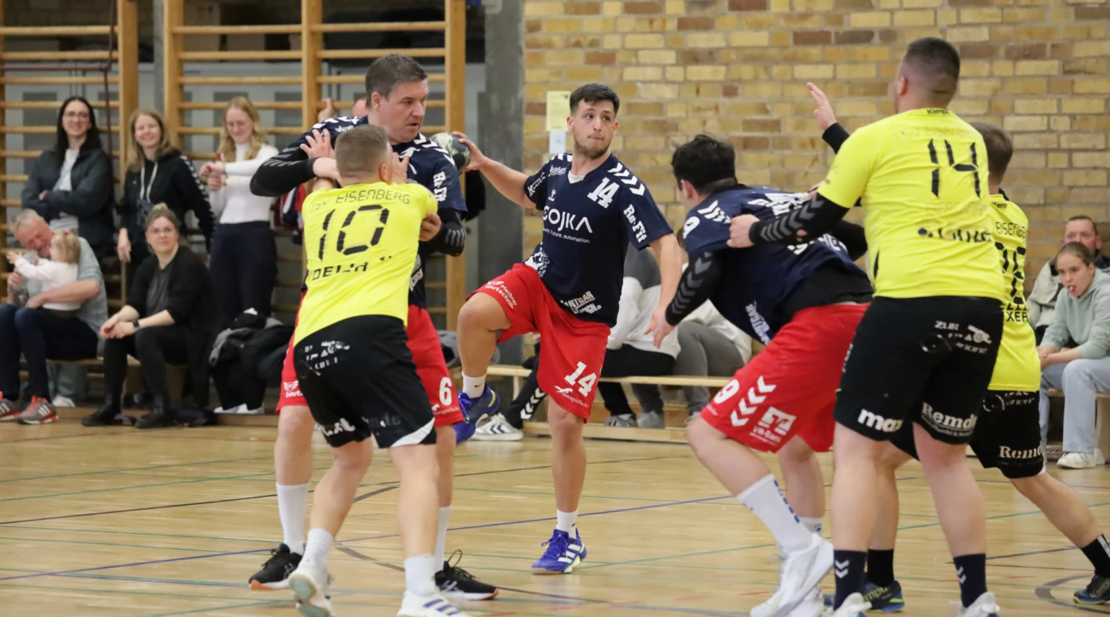 Für die Altenburger unter Trainer Hans-Jürgen Gleitsmann stand einiges auf dem Spiel: Nach 14 Spielen waren bislang nur fünf Siege zu Buche gestanden. Der aktuelle siebte Platz ist aus Vereinssicht nicht gerade berauschend, Punkte sollten also dringend her. Dementsprechend engagiert ging es von beiden Seiten von Anfang an zur Sache. Verschnaufpausen gab es keine in dieser von hohem Tempo geprägten Partie, geschuldet der Nervosität, aber auch einem Übermaß an Fehlwürfen. Dennoch hatten sowohl Aufbau-Torhüter Ron Rexin als auch Eisenbergs Jannik Schwarzenbach reichlich zu tun.