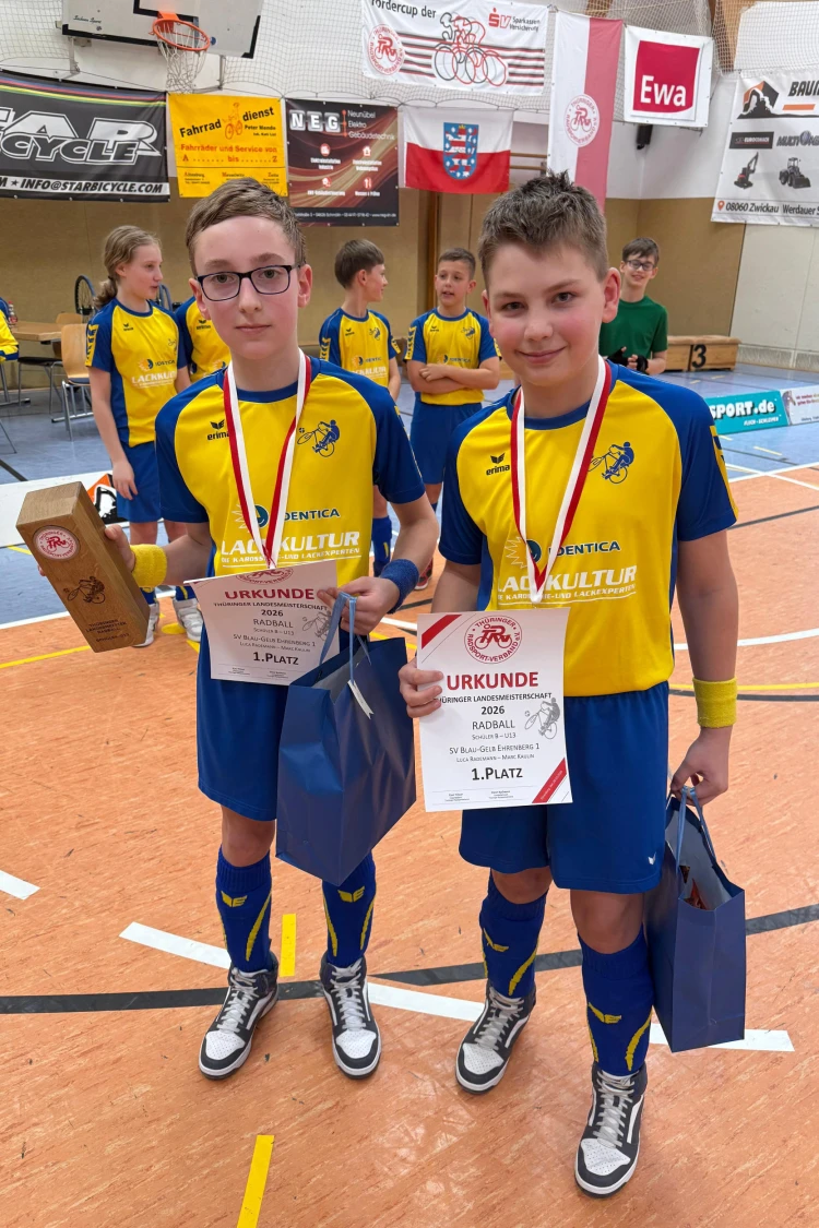 Bei den Thüringer Landesmeisterschaften im Radball der Schüler U13 dominierten die Teams des SV Blau‑Gelb Ehrenberg: In der Ehrenberger Mehrzweckhalle traten drei Ehrenberger Mannschaften gegen zwei Teams aus Lgl.-Niederhain an. Gespielt wurde eine Vorrunde „Jeder gegen Jeden“ (10 Spiele), danach kleines Finale (Platz 3–4) und Finale (Platz 1–2).